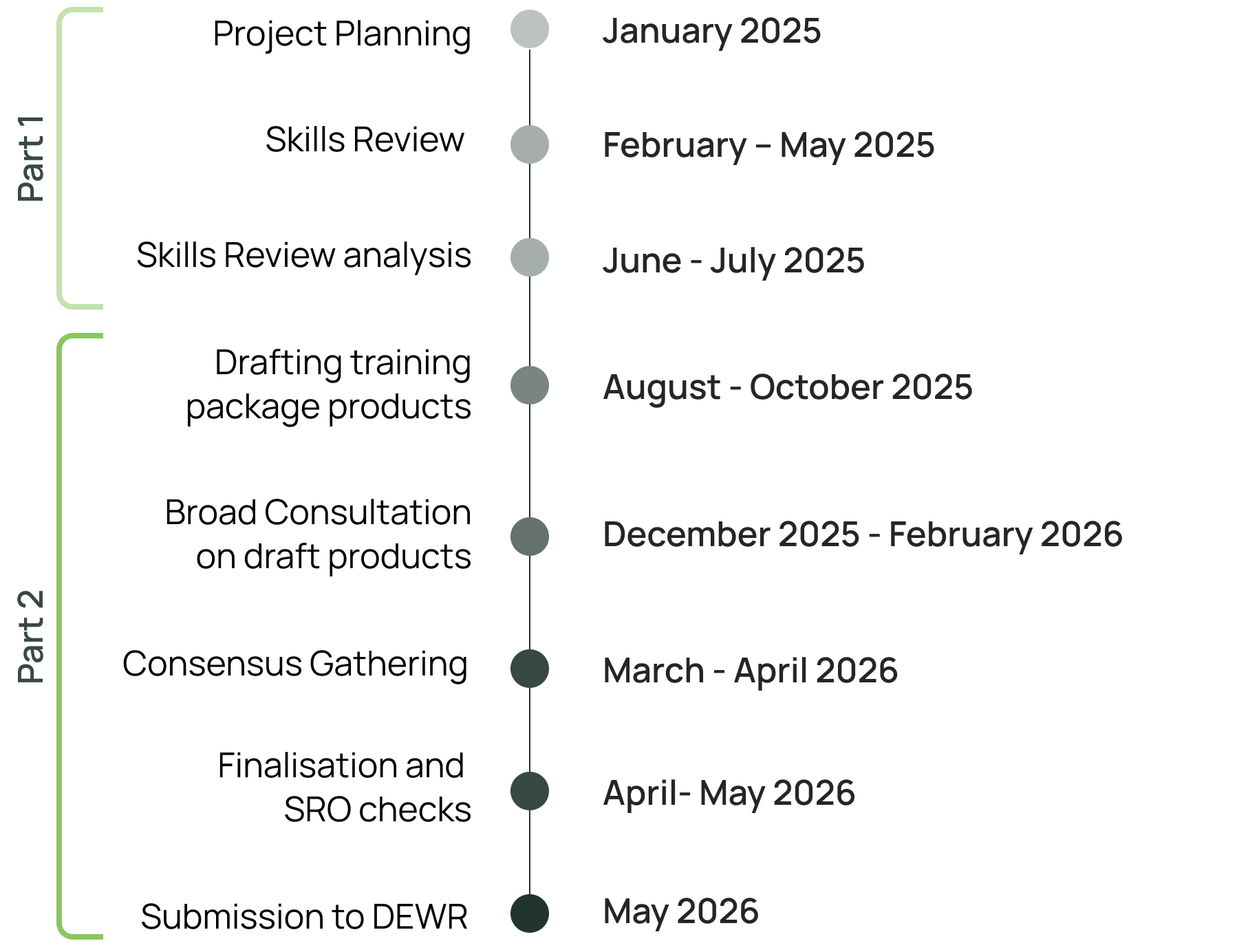 The second part of this project will commence in August 2025 to take advantage as the new training package product flexibility that comes into effect in July 2025. The new approach to developing training package products will be utilised to support veterinary nursing career pathways and assist in addressing retention rates and skills shortages.